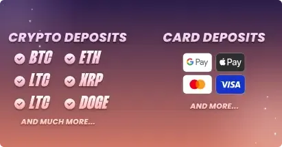 - Card or Mobile Pay- Use Visa, Mastercard, Apple Pay, or Google Pay via Swapped.com or Banxa.com. These services convert fiat to crypto instantly and credit your Jackpot.bet balance right away.