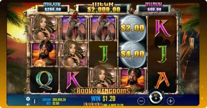 You can firstly explore the Book of Kingdoms demo if you’d like to test it out before gambling with real money.