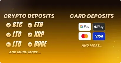 Copy your personal Jackpot.bet wallet address, send funds from your wallet or exchange, and your deposit will be credited within minutes of confirmation. - Card Payments (Fiat to Crypto)- Prefer using your card? Use Visa, Mastercard, Apple Pay, or Google Pay through trusted payment providers like Swapped.com or Banxa.com. Your funds are instantly converted into crypto and added to your balance.