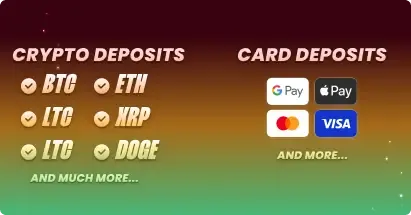 Card Payment (Fiat to Crypto) - Use Visa, Mastercard, Apple Pay, or Google Pay to make a deposit in your local currency. At checkout, select your preferred crypto. Your fiat will be instantly converted and added to your Jackpot.bet wallet via trusted providers like Swapped.com or Banxa.com.