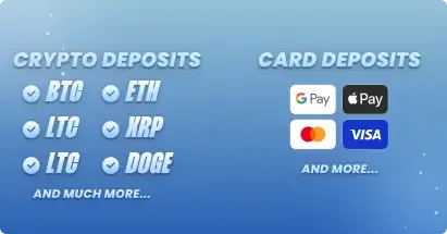 Simply copy your Jackpot.bet wallet address and send funds from your personal wallet or exchange. Funds typically land in minutes after network confirmation. - Fiat to Crypto via Card- Use Visa, Mastercard, Apple Pay, or Google Pay to deposit with your local currency. At checkout, choose your desired coin. Your payment will be processed through trusted platforms like Swapped.com or Banxa, instantly converting and crediting your balance.