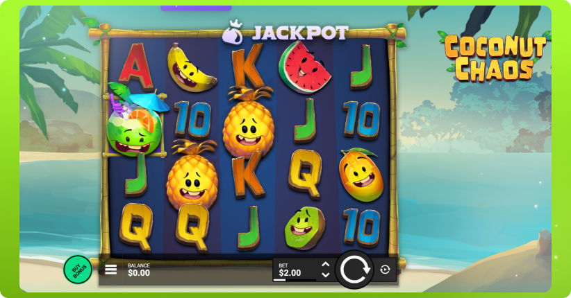 Paired with crisp sound effects and a light, rhythmic soundtrack, Coconut Chaos delivers a smooth, modern look that keeps the focus where it belongs, on the spins and what they might turn into next.