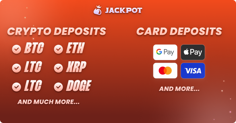 - Choose a deposit method: Select cryptocurrency and send funds using your personal Jackpot.bet wallet address, or use card payments with Visa, Mastercard, Apple Pay, or Google Pay. Card deposits are converted to crypto instantly through trusted providers.