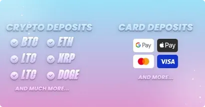 If you don’t already hold crypto, you can use Visa, Mastercard, Apple Pay, or Google Pay to deposit with your local currency. At checkout, choose the coin you want to buy, and your funds will be instantly converted and added to your Jackpot.bet account via trusted partners like Swapped.com or Banxa.com.
