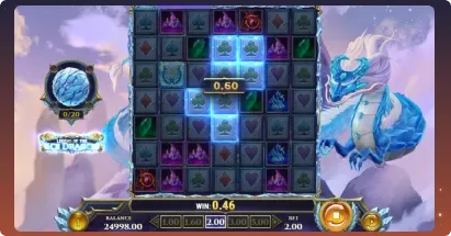 Legend of the Ice Dragon is a fantasy-themed slot game built on a dynamic 7x7 cascading grid, where wins are triggered by clusters of five or more matching symbols. Every win causes a chain reaction, winning symbols vanish and new ones drop in.