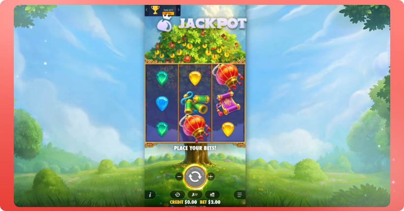 Lucky Fortune Tree leans into a traditional luck-and-prosperity theme, with a bright money tree backdrop covered in coins, charms, and red envelopes.