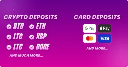 Step 3: Pick your payment method - You can choose crypto or card. For crypto, just copy your personal Jackpot wallet address and send coins like BTC, ETH, USDT, DOGE, and more. If you're using a card, deposit with Visa, Mastercard, Apple Pay, or Google Pay - your funds are converted to crypto instantly using trusted providers like Swapped.com and Banxa.com, then credited to your account.