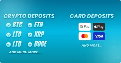 - Use Visa, Mastercard, Apple Pay, or Google Pay to deposit in your local currency.