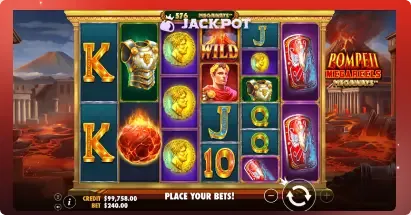Pompeii Megareels Megaways brings the fiery fall of an ancient Roman city to life in slot form, combining explosive visuals with game-changing features.