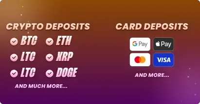 Copy your unique Jackpot.bet wallet address, send the funds using your crypto wallet or exchange and they’ll be credited to your account once the network confirms the transaction. - Card Payment (Fiat to Crypto) - Prefer using traditional currency? Use Visa, Mastercard, Apple Pay, or Google Pay. During checkout, choose which crypto you’d like to buy, your fiat gets instantly converted and credited via trusted providers like Swapped.com or Banxa.com.