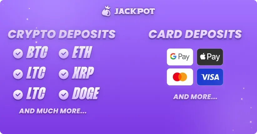 Jackpot.bet supports cryptocurrencies as well as card-based fiat-to-crypto payments, giving players multiple flexible options to fund gameplay.