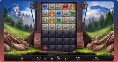 To unlock the full potential of this slot, your goal is to clear layers of dark stone blocks.