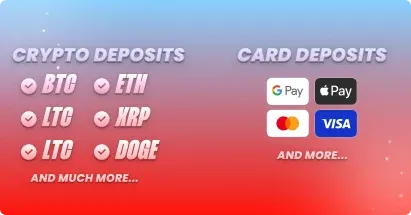 - Card Payment – Use your regular card (Visa, Mastercard, Apple Pay, or Google Pay) to buy crypto instantly. Your deposit is converted and credited to your Jackpot.bet account using trusted partners like Swapped.com or Banxa.com.