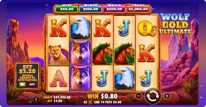 Absolutely. Jackpot.bet offers a Wolf Gold Ultimate demo version, letting you explore all the bonus rounds and mechanics - including Ante Bet, Money Respins, and more - without risking any funds. Perfect for testing strategies or just spinning for fun.